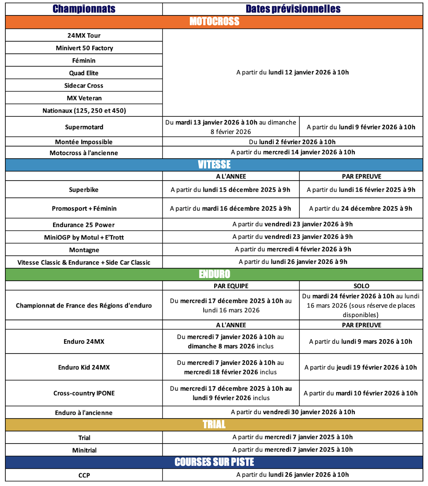 Choisir une discipline :