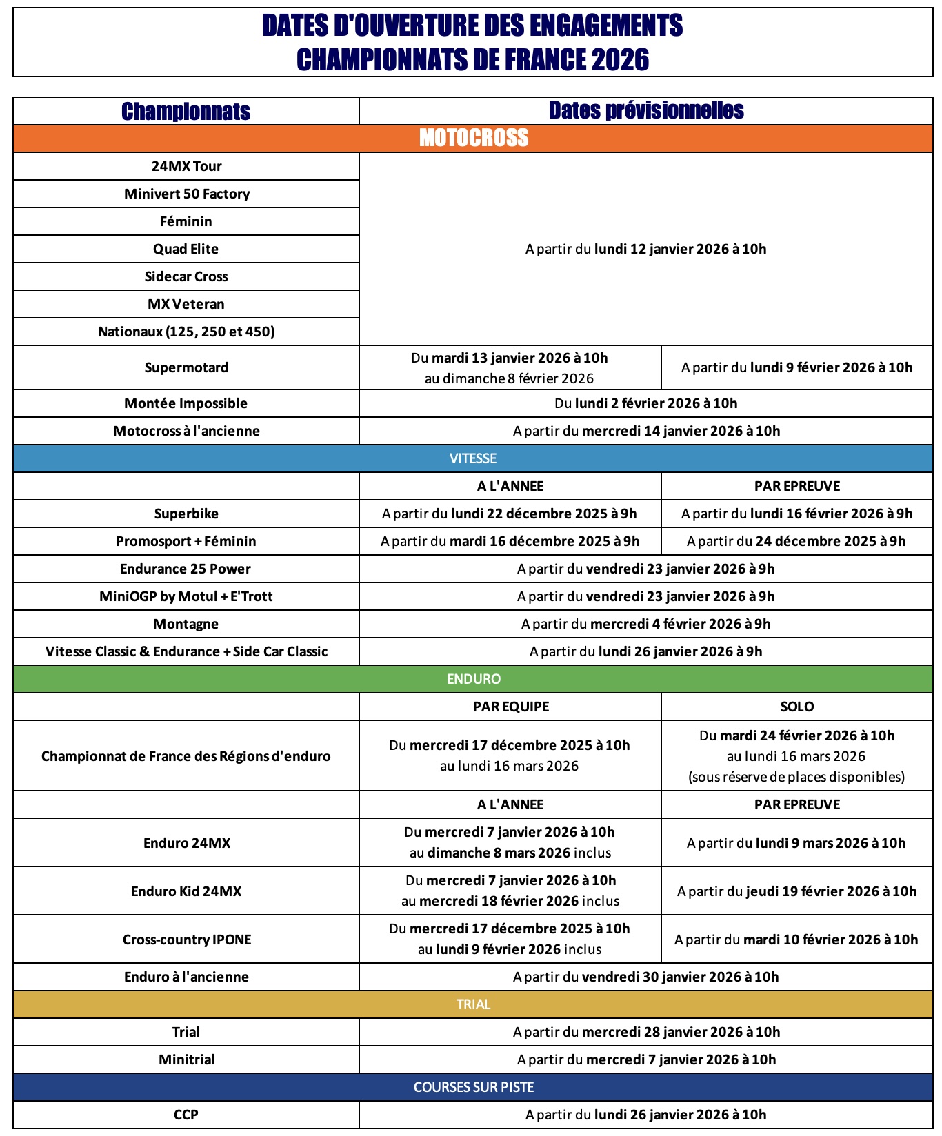 Prochains championnats de France